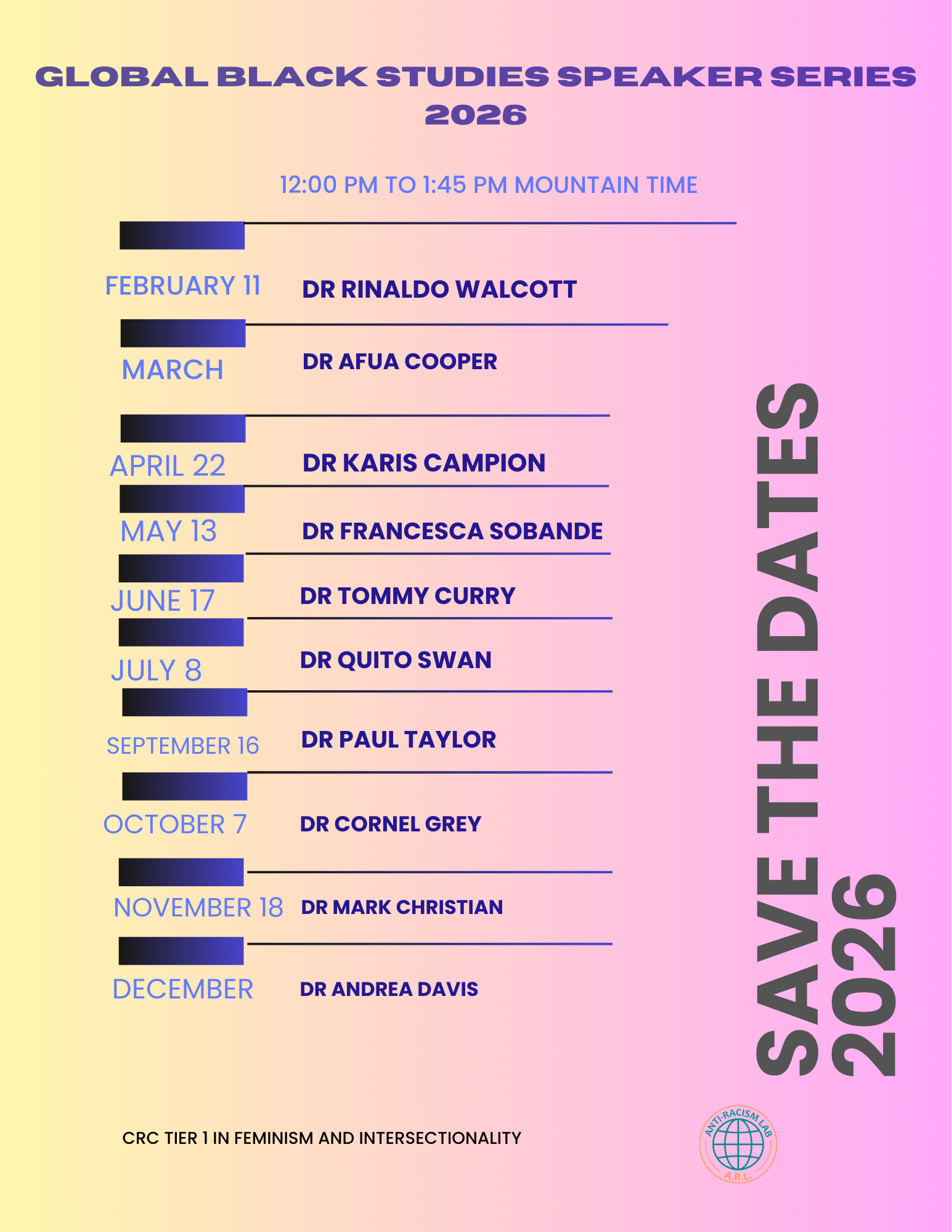 In 2026, Anti-Racism Lab is launching a Speaker Series on Global Black Studies to honour the Second UN International Decade for People of African Descent, which runs from January 2025 to December 2034.